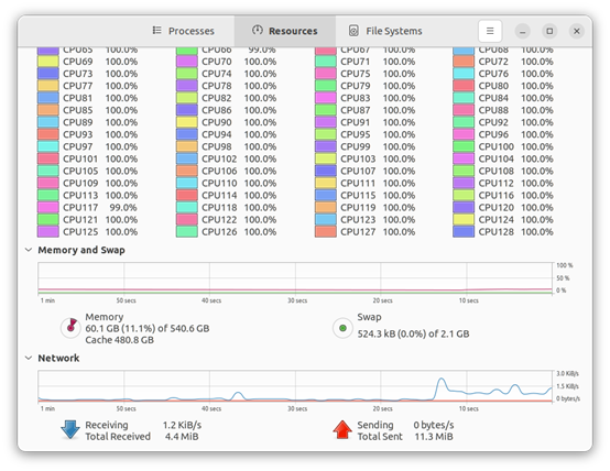 • CPU:Intel Xeon 6448Y ×2,64 core 128 Thread