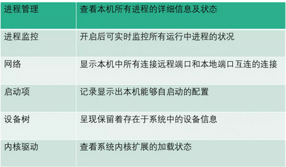 以列表或树型展示系统中全部活跃以及非活跃进程信息,并允许用户对其进行操作(强制结束进程、提取内存字符串等)包括: