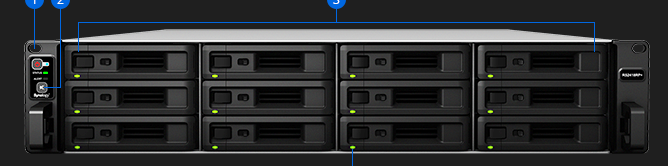 • Synology RX1217/RX1217RP 至多可扩充至 24 个硬盘 1