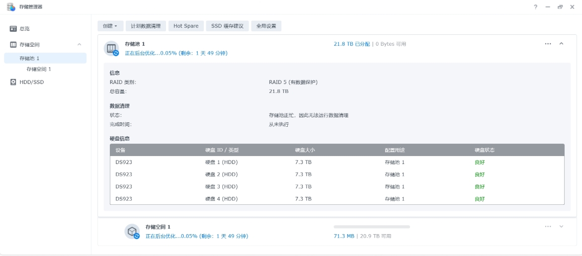 订购了一台群晖DS923+用作监控存储主机,搭配了4块8T希捷酷狼企业级硬盘,配置raid5,实现一块硬盘的冗余,在意外故障来临时,允许一块硬盘损坏而不会直接影响到监控视频,实现了最大支持20多T的监控数据存放,后续也可通过增加硬盘柜的方式,达到扩容的需求,这促使他们将整个安全系统切换到 Synology