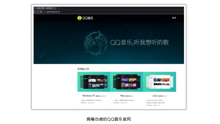 该网站内容与QQ音乐原始官方网站高度相似,诱导用户下载,如下图所示: