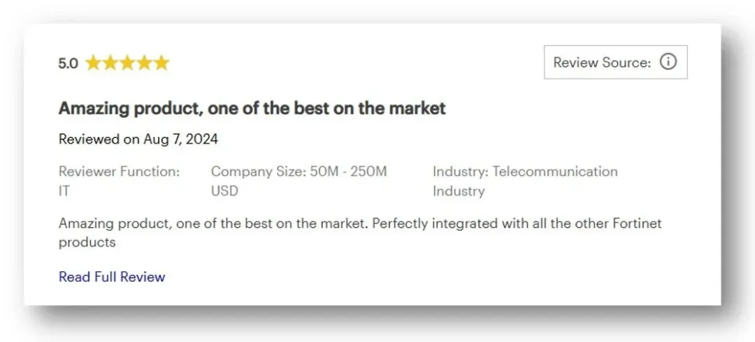 此前,Fortinet Unified SASE 解决方案的另两大关键组件分别获评 2024 年 Gartner Peer Insights 安全服务边缘(SSE)“客户之选”,以及 2025 年 Gartner Peer Insights 零信任网络访问(ZTNA)“客户之选”。Fortinet 成为业界唯一一家包揽三大市场 Gartner Peer Insights “客户之选”的安全厂商。