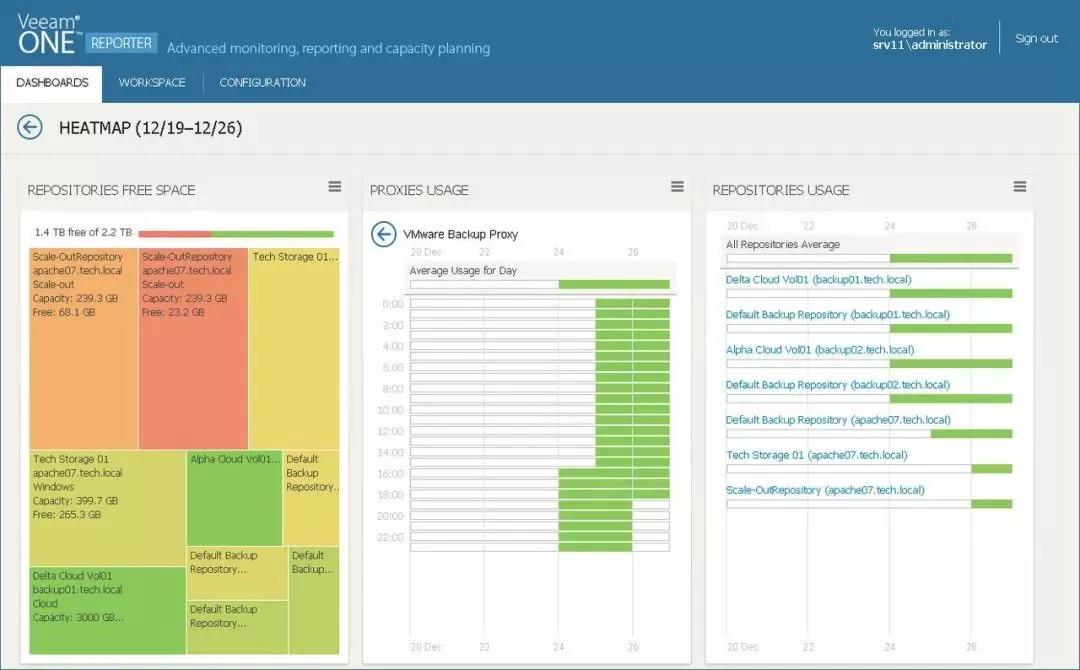 借助 Veeam ONE Heatmaps 轻松识别过度利用和可能的弱点或基础架构漏洞,包括深度洞察备份存储库和代理.
