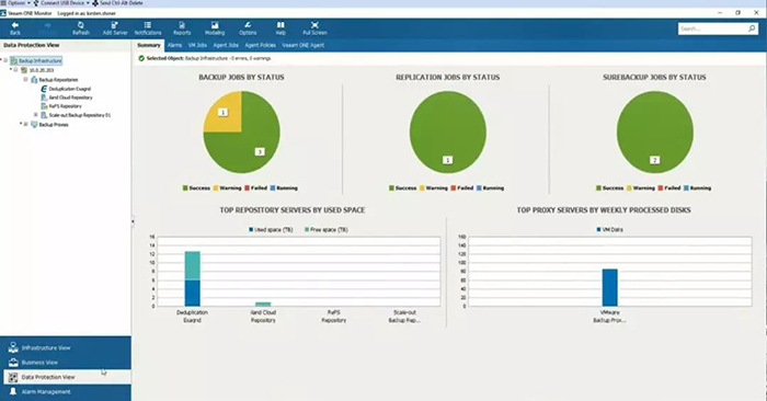 Veeam® ONE™ 可无缝集成至您的整个 IT 环境中,为虚拟和 Veeam 保护的云和物理工作负载提供全面可视性.该产品的监控、报告和智能工具可帮助企业实现保持可用性所需的自动化和控制水平,及时防范潜在问题,避免运营受到影响.