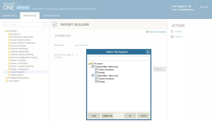 Veeam ONE 可即时为您提供需要的原始数据。轻松访问 vSphere 和 Hyper-V 的原始性能数据和定制基础架构报告,包括 CPU、内存、网络和磁盘指标.您还可定义自己的配置参数、性能指标和过滤器,以实现出色的灵活性,并借助 Veeam ONE 的 Custom Report Builder,将任何现有报告中任何字段的数据整合在一个报告文档中!