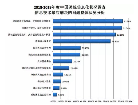 从CHIMA《2018-2019中国医院信息化状况调查报告》调查结果来看,当前医院信息技术建设,主要考虑以下三大问题: