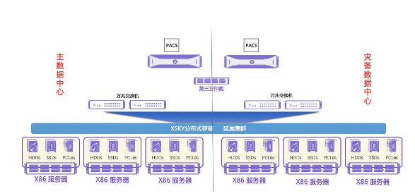 对于医院一类需求众多并且要求十分严苛的客户,XSKY X3000一体化设备快速交付搭配延展集群构建的数据中心双活系统,是当下医院PACS系统对提高业务效率、保障设备可靠性、降低IT成本要求下的优选方案。