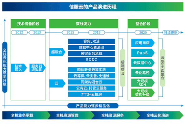 升级后的信服云,创新性地构建了一条IT云化的演进路径,全新定义数据中心云化五大演进阶段:超融合、超融合云数据中心、私有云数据中心、混合云数据中心、多云服务中台,平滑地适配用户各个阶段业务发展的诉求。从过去的超融合承载业务向数据中心全面云化完成转变。